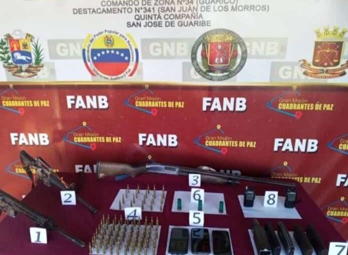 En el lugar de los hechos se practicó la retención de dos fusiles (AR-15 Sport, calibre 5,56 mm y 7,62 x 51 mm) y una escopeta 12. Además, 90 cartuchos calibre 5,56 mm, tres cartuchos calibre 12, cinco cargadores de AR-15, dos radios transmisores y tres equipos telefónicos, según reporte del Destacamento 341 de la GNB.