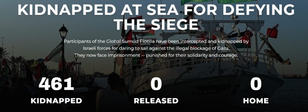 En el portal de la flotilla figura la imagen de 461 raptados por «desafiar el asedio» instando al mundo a tomar participación en la defensa de Gaza.