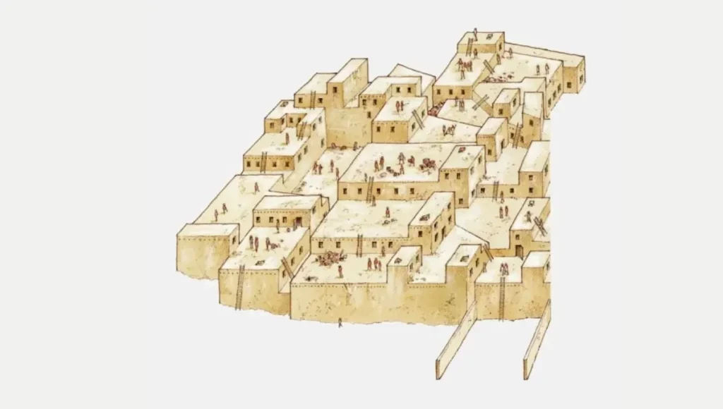 Durante el Neolítico, la transición del estilo de vida nómada a una existencia más estable en comunidades organizadas fue un proceso transformador, y Çatal Hüyük fue un centro clave en esta evolución para la historia de la humanidad. El asentamiento se extiende por 13 hectáreas y albergaba a más de 8.000 personas. Lo que hace único a Çatal Hüyük es su particular disposición: no contaba con calles, sino que las viviendas estaban interconectadas entre sí. Para acceder a las casas, se usaban escaleras que conectaban las techumbres y las claraboyas. Este diseño sugiere un alto grado de planificación y una vida social muy organizada.