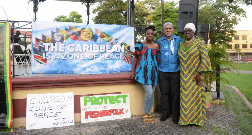 Mediante esta manifestación pacífica, la población civil trinitobaguense toma una postura ante los más de 15 ataques cinéticos de Estados Unidos en aguas del Caribe.