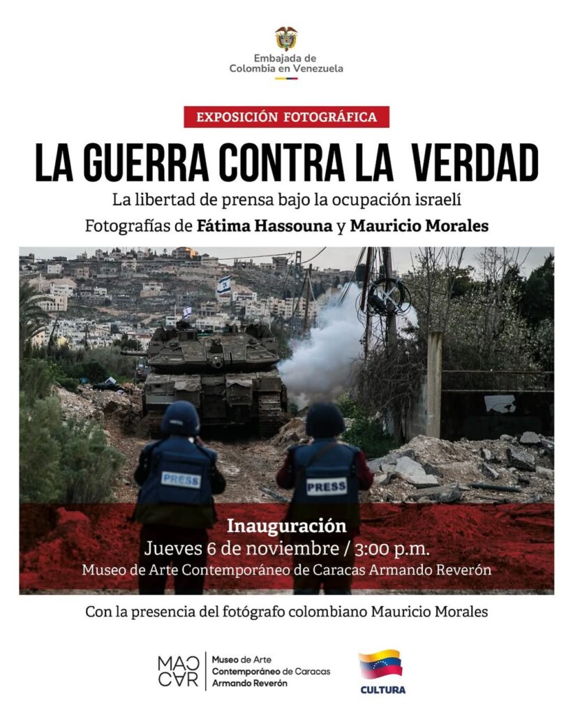 El Museo de Arte Contenporáneo de Caracas Armando Reverón (Maccar) de Caracas, abre sus puertas para la exposición fotográfica «La guerra contra la verdad: La libertad de prensa bajo la ocupación israelí», que comenzará este jueves 6 de noviembre a las 3:00 de la tarde.