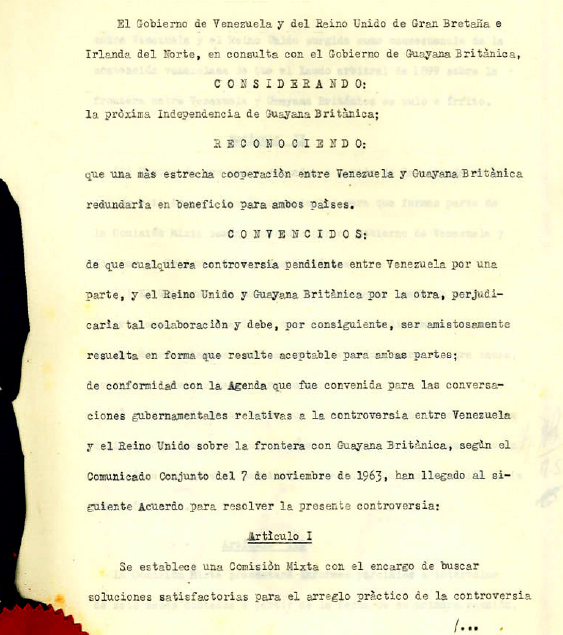 De este modo, un 12 de noviembre de 1962, el gobierno de venezolano de turno, representado diplomáticamente por el Canciller, Marcos Falcón Briceño, acordó con Gran Bretaña revisar los límites entre Venezuela y la Guayana Británica. Con este paso, por primera vez en 60 años, Londres aceptaba el reclamo legítimo de Caracas y se iniciaba el rumbo de las negociaciones para llegar al Acuerdo de Ginebra de 1966.